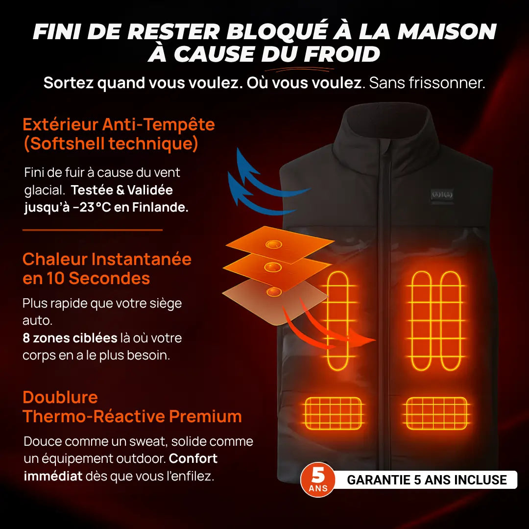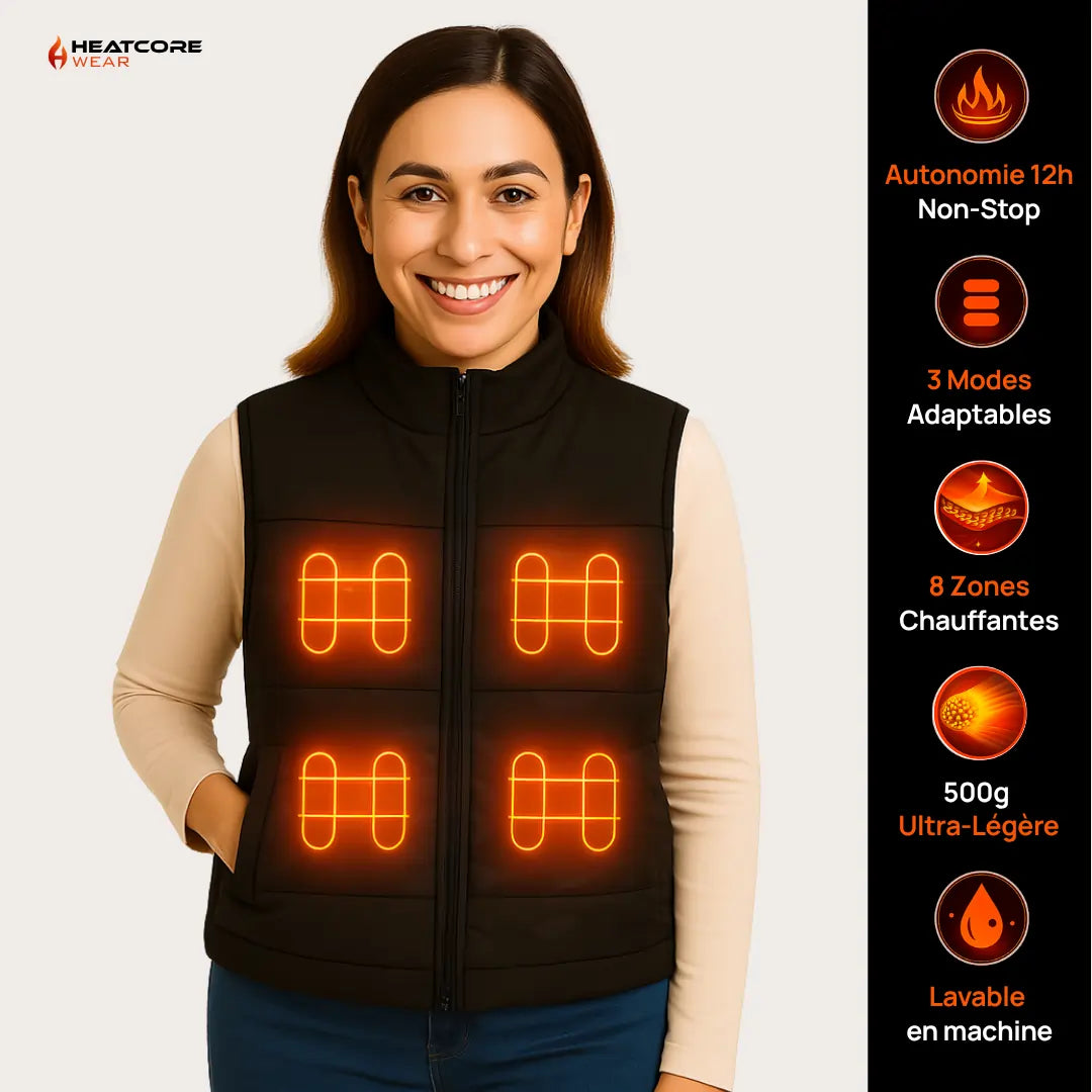 8 zones chauffantes intelligentes transforment votre manteau en véritable bouclier thermique.