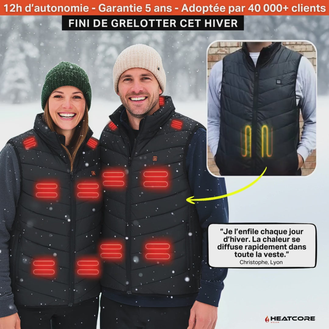 Vraiment content de ma veste Heatcore. Elle fait exactement ce qu'elle promet : chaleur rapide, confort et légèreté. Je la porte tous les jours maintenant.